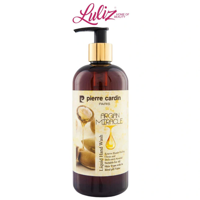 PIERRE CARDIN Argan Miracle Liquid Hand Wash 400ml combines effective cleansing with the nourishing benefits of argan oil. This gentle formula removes impurities while helping to hydrate and soften the skin, leaving hands refreshed and silky smooth. Ideal for regular use, it supports healthy skin with a subtle, luxurious touch. ORIGINAL BRANDS GUARANTEE Get it now from Luliz