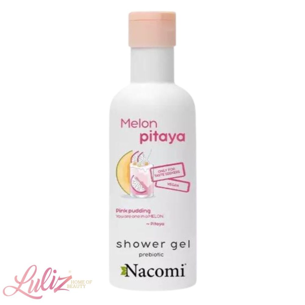 Nacomi Melon Pitaya Shower Gel 300 Ml In a gentle but effective way, it washes and cleanses the skin of the whole body of all impurities and dirt, without drying the epidermis. It contains a strong dose of nourishing ingredients such as pitaya and melon extract, prebiotics, sorbitol, panthenol, glycerin and vitamins E and C. it effectively protects the skin against harmful factors, free radicals and other impurities. It Soothes irritations, smoothes, reduces itching and strengthens the epidermis.